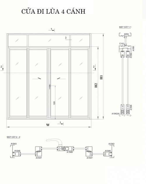 Về thiết kế : Cửa được thiết kế gồm 3 ray trượt, có thể chia 3 hoặc 6 cánh với kích thước bằng nhau tùy theo diện tích cửa.