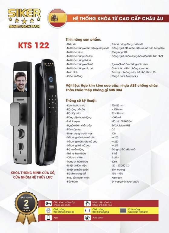Khoá điện tử KTS 122 là khóa điện tử cho cửa nhôm được Siker Spain trợ giá để nhà nhà ở Việt Nam đều có thể đủ điều kiện sử dụng. Khoá được trang bị chức năng tự khóa khi đẩy cửa vào, từ đó giúp ngăn chặn kẻ lạ đột nhập vào nhà khi gia chủ quên khoá của.Khoá điện tử KTS 122 được nghiên cứu và thiết kế phù hợp mọi hệ cửa nhôm có mặt ở thị trường hiện nay. Vì thế bạn hoàn toàn có thể yên tâm để lựa chọn KTS 122 để mang đến an toàn cho gia đình mình.