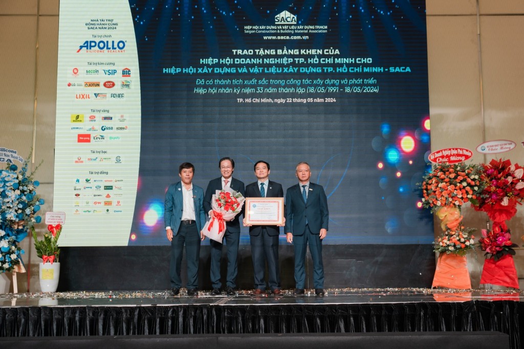 Ngày 22/05/2024, Hiệp hội Xây dựng và Vật liệu xây dựng Thành phố Hồ Chí Minh đã long trọng tổ chức lễ kỷ niệm 33 năm thành lập. Lễ kỷ niệm được diễn ra với không khí hứng khởi và nhiệt huyết. Phần lễ diễn ra với hoạt động nhận bằng khen từ Hiệp hội Doanh nghiệp Thành phố Hồ Chí Minh trao tặng cho SACA. Với những kết quả đã đạt được, tất cả những thành viên của hiệp hội có quyền tự hào vì thành tích của mình để từ đó có thể cống hiến và giúp đỡ nhau để cùng phát triển mạnh mẽ hơn nữa.