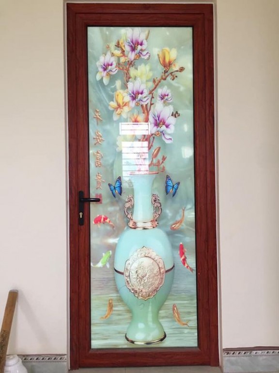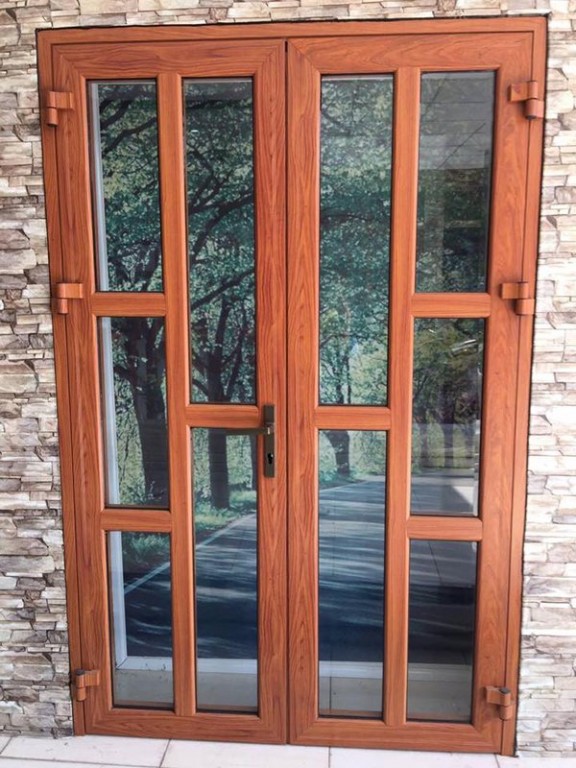 Mẫu cửa nhôm Xingfa vân gỗ sử dụng kính hoa
