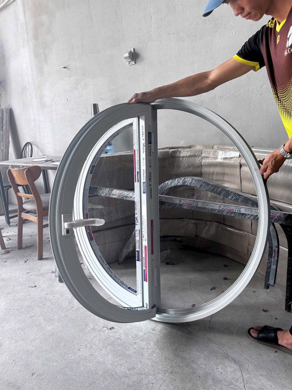 Chú thích ảnh: Một sản phẩm cửa nhôm uốn vòm tròn hoàn thiện, sẵn sàng lắp đặt.