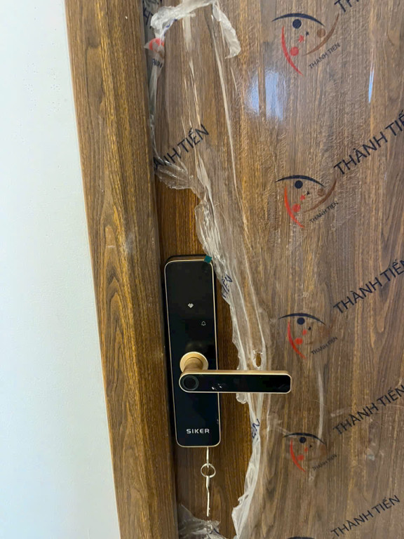 Chú thích ảnh: “Khoá thông minh Siker lắp đặt trên cửa gỗ, thiết kế sang trọng và tinh tế.”