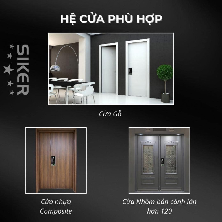 5. Khóa SIKER KTS501: Hệ cửa phù hợp SIKER KTS501 được thiết kế để tương thích với nhiều loại cửa phổ biến hiện nay, bao gồm: