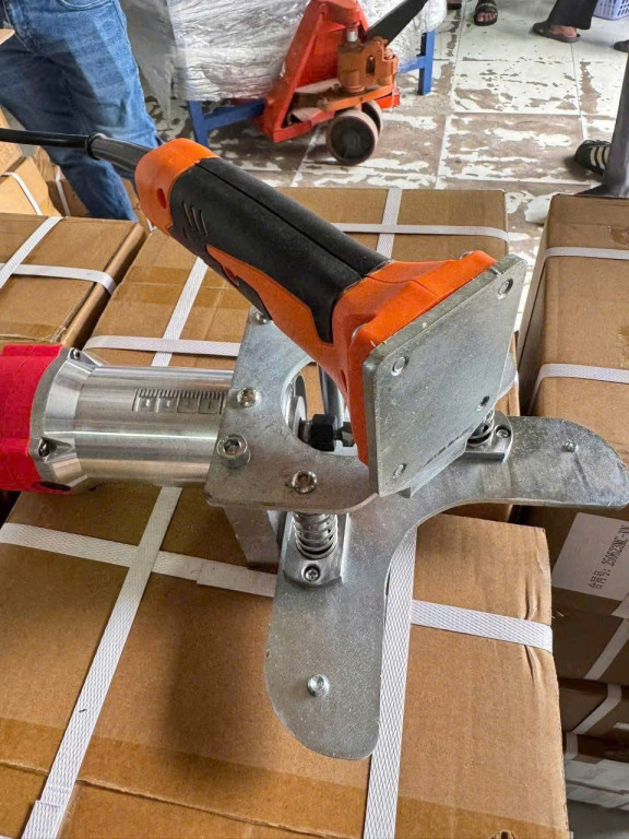 Chú thích ảnh: Tổng quan máy bo góc nhôm thiết kế cầm tay với hệ thống lò xo giảm chấn giúp thao tác mượt mà.