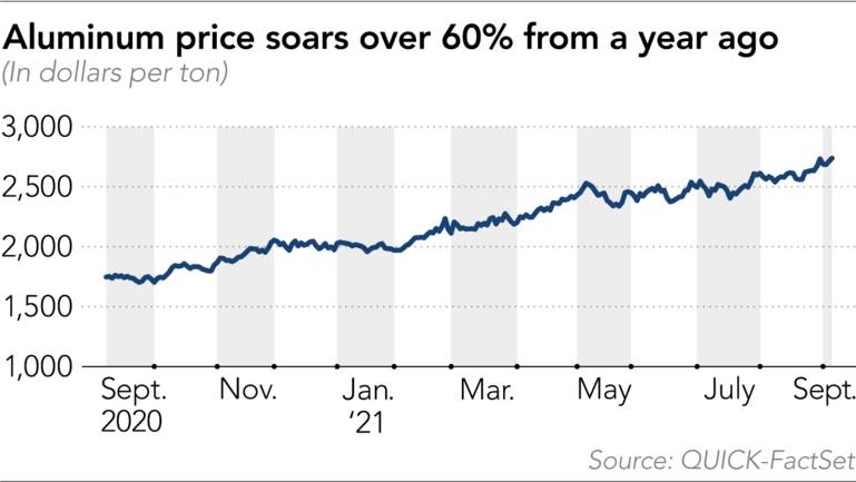 Trong nửa đầu năm 2021, lượng cung nhôm nguyên liệu không đủ đáp ứng nhu cầu của các nhà sản xuất khiến giá nhôm nguyên liệu trong nước liên tục tăng. Nguyên nhân là do nhiều nhà sản xuất bị chậm thời gian nhận nguyên liệu so với hợp đồng từ 2 đến 3 tháng gây ảnh hưởng đến hoạt động sản xuất ngắn hạn. Giá nhôm thế giới tăng cao, cùng với nhu cầu nhôm nguyên liệu tăng khiến giá nhôm trong nước tiếp tục bị đẩy lên cao.