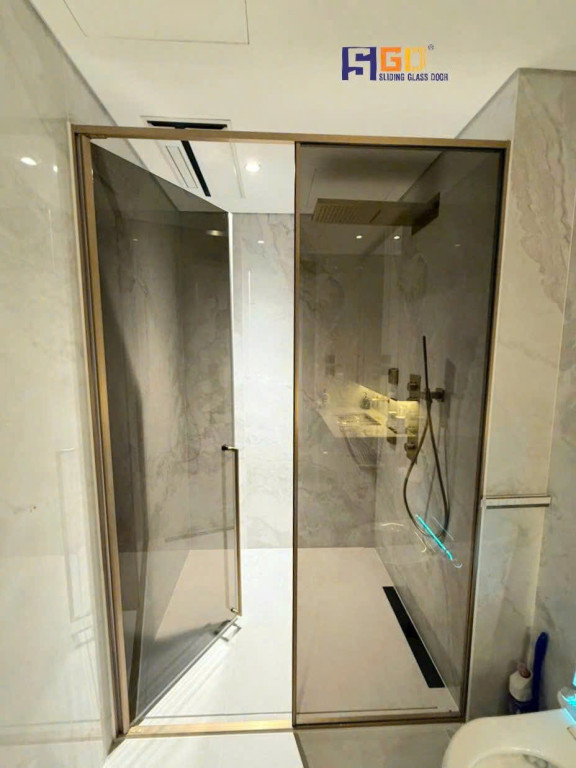 Cabin kính với phụ kiện nhôm xi mạ giấu bản lề mang lại sự liền mạch trong thiết kế. Mẫu cửa mở quay mẫu thẳng giúp không gian trở nên rộng rãi, sạch sẽ và hiện đại hơn. Bản lề được giấu khéo léo trong khung nhôm, mang lại tính thẩm mỹ cao và dễ dàng vệ sinh.
