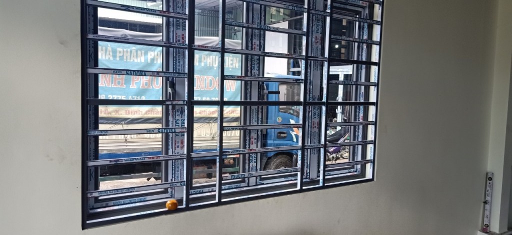 Khung bảo vệ cửa nhôm Xingfa bằng inox.
